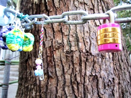 二人の愛情を確かめ合うかのように、ロックされた鍵がぶら下がります。場所はお染久松の墓がある野中寺。縁結びの鍵。ATCで見た南京錠が頭をよぎります。恋人たちの聖地には、二人を結び付ける鍵が付き物のようですね。