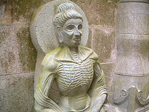 苦行とは神仏に奉仕するため、肉体的欲望・物質的生活を抑制する修行のことを意味します。苦行の具体的方法として、瞑想、断食、不眠などが挙げられます。パキスタンにある本物の「釈迦苦行像」を彷彿とさせますね。奈良の壷阪寺には数多くの石像がありますが...