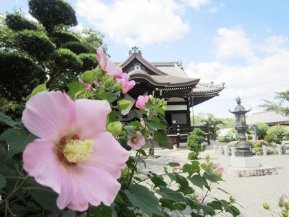 朝から夕刻にかけて色の変化が楽しめる酔芙蓉の花も咲いています。橘寺の拝観料は350円。西門前に無料駐車場あり。