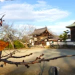 右奥に公衆トイレがあり、さらに先へ進むと境内です。